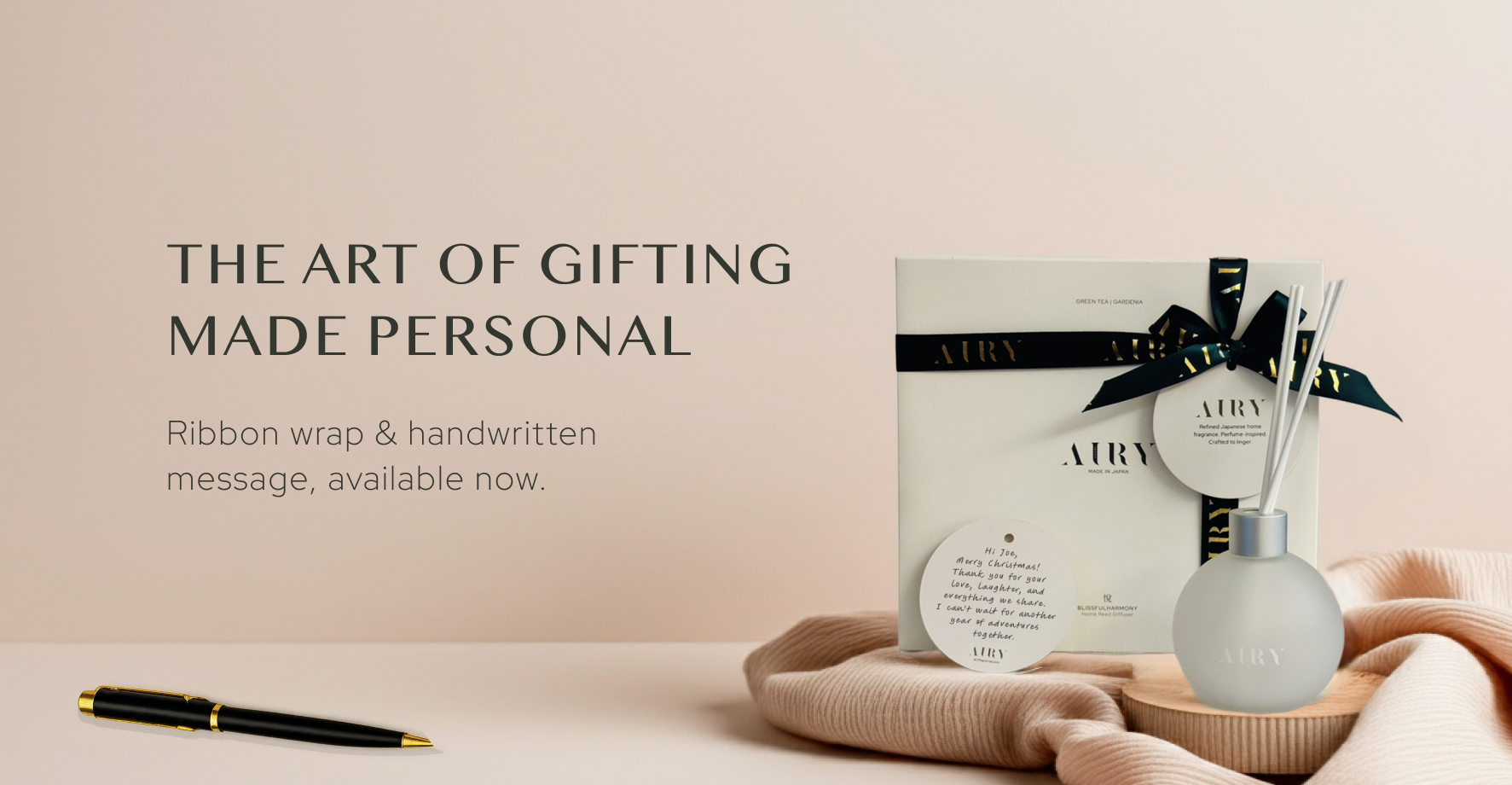 Make every fragrance a thoughtful gift. Add a personal touch with ribbon wrapping and a handwritten card, prepared by the Airy team.